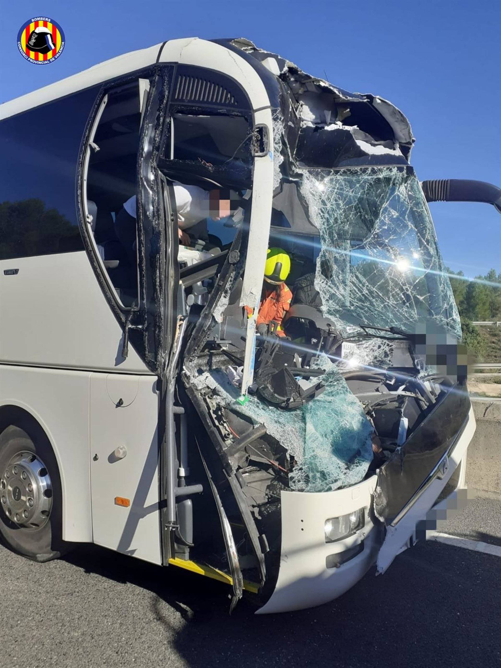 Autobús accidentado este viernes en la A-7 a su paso por Xtiva (Valencia) - CONSORCIO BOMBEROS VALENCIA