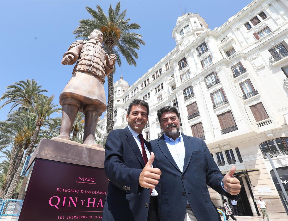 "Constituye una bienvenida a todos los alicantinos y visitantes y reforzará el éxito de la exposición de los guerreros de Xi'an en el MARQ", ha manifestado el presidente de la Diputación, Carlos Mazón, en una visita al guerrero junto al alcalde de Alicante, Luis Barcala.
