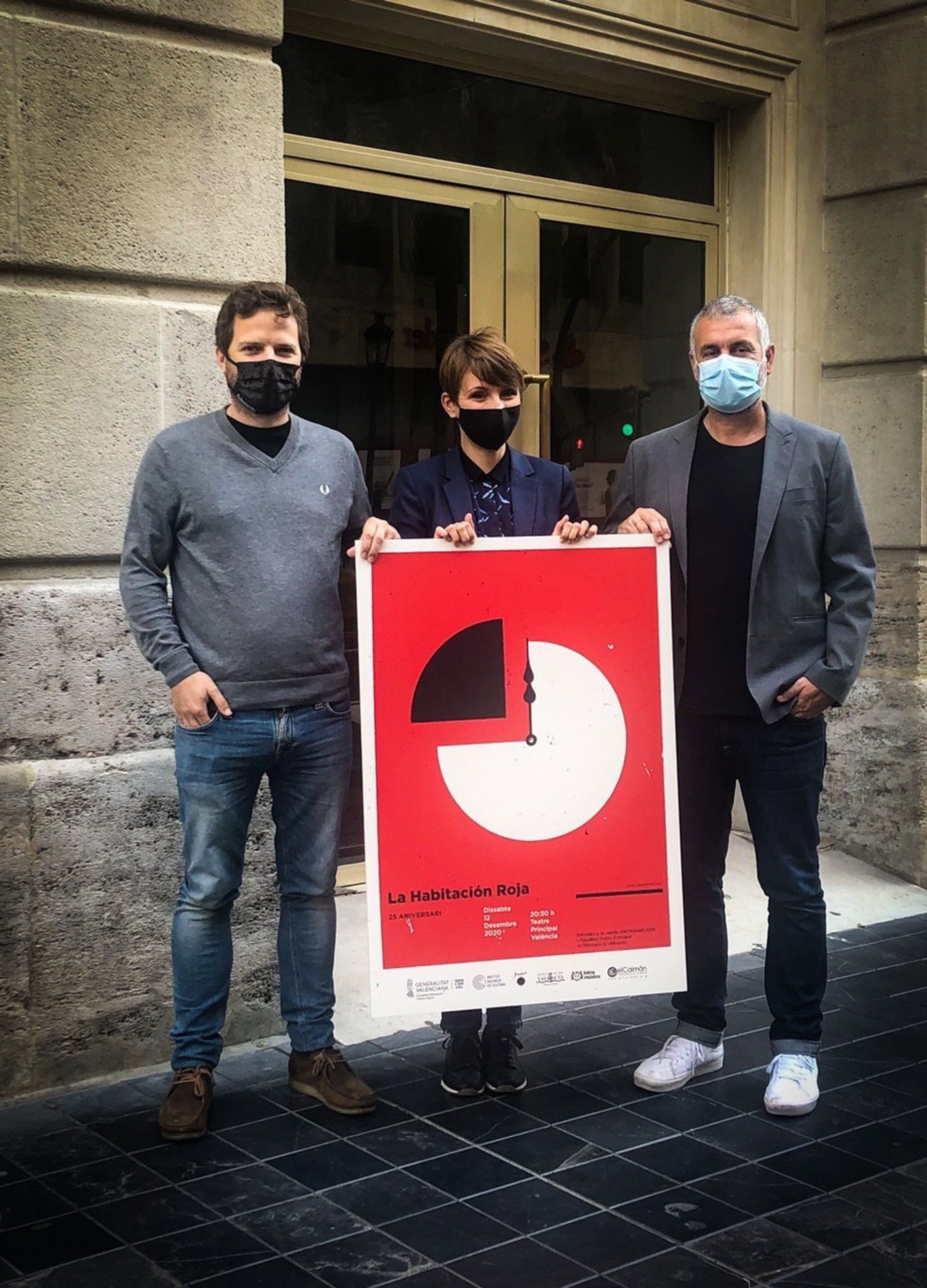 Pau Roca y Jorge Martí, de La Habitación Roja, con Marga Landete (IVC) en el centro, en el Teatro Principal de Valncia - IVC