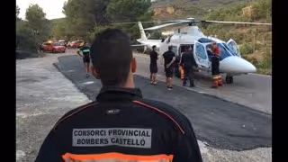 Los bomberos de los parques de Alt Maestrat y Els Ports han inmovilizado al herido, que estaba totalmente consciente, lo han extraido del barranco y lo han trasladado hasta el helicóptero medicalizado.