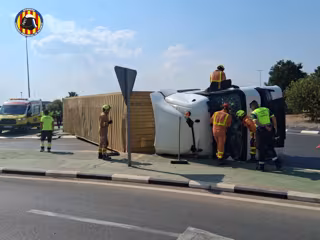 Un hombre de 42 años ha resultado herido al volcar el camión que conducía, que transportaba madera, en la carretera CV-33, a la altura de Albal (Valencia). El varón ha sido trasladado a un centro hospitalario, según ha informado el Consorcio Provincial de Bomberos de Valencia.