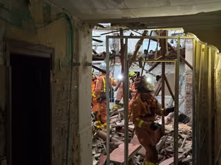 Parte del techo del inmueble se ha caído, lo que ha dejado atrapado al hombre, que ha tenido que ser extraído de los escombros. Los bomberos, junto a la policía y servicios sanitarios, han auxiliado al herido. Los bomberos también han revisado que no quedara nadie dentro de la vivienda.
