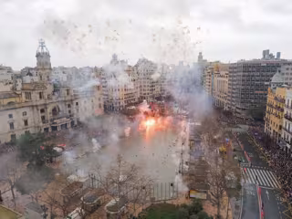 La pirotecnia Hermanos Caballer ha podido disparar este sábado, Día de San José y último de las Fallas de 2022, la 'mascletà' en la plaza del Ayuntamiento a pesar de la lluvia que ha puesto en duda la celebración del espectáculo pirotécnico hasta el último momento. Finalmente, el disparo ha merecido los aplausos del público que, en palabras del pirotécnico José Caballer, "se merecía una alegría" después de dos años de pandemia.
