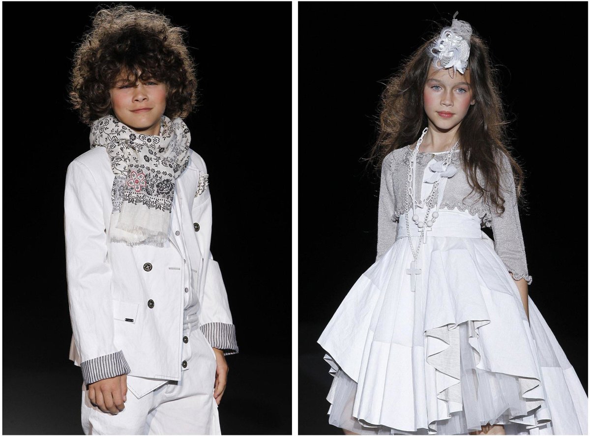 Rubio Kids by Hortensia Maeso desfilará en Fimi con dos propuestas de su colección 'Polvos de Talco', que triunfó en Cibeles por la introducción del tejido denim en los trajes de comunión para chicos y que contempla, como siempre ha procurado la marca desde sus inicios, el 'total look', de manera que viste al niño desde los zapatos hasta los tocados y otros complementos de peinado, un toque ya definitivo y característico de Rubio Kids.