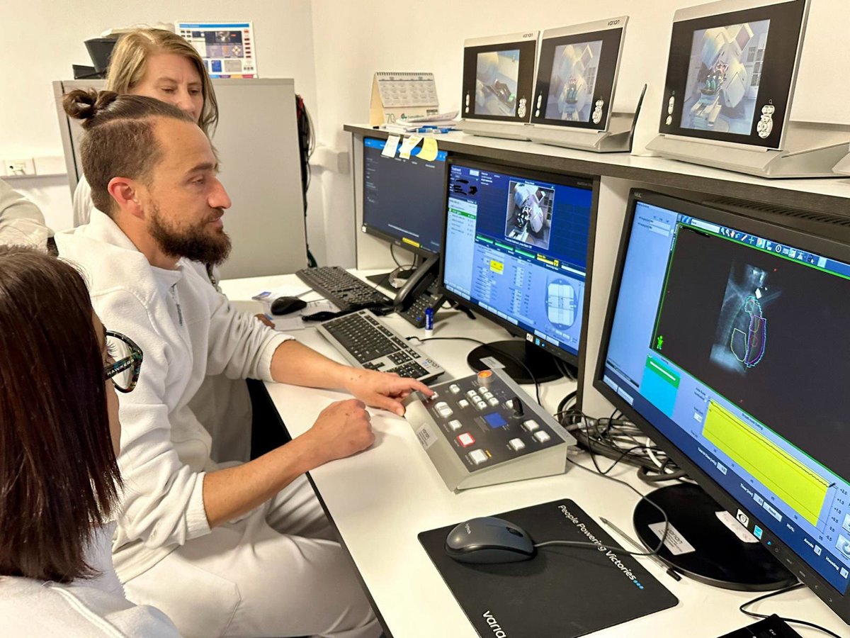 A todos los pacientes del servicio, antes de ser tratados en el acelerador lineal se les realiza un TAC a través del cual los especialistas diseñan el tratamiento que ha de ser suministrado de forma muy precisa.