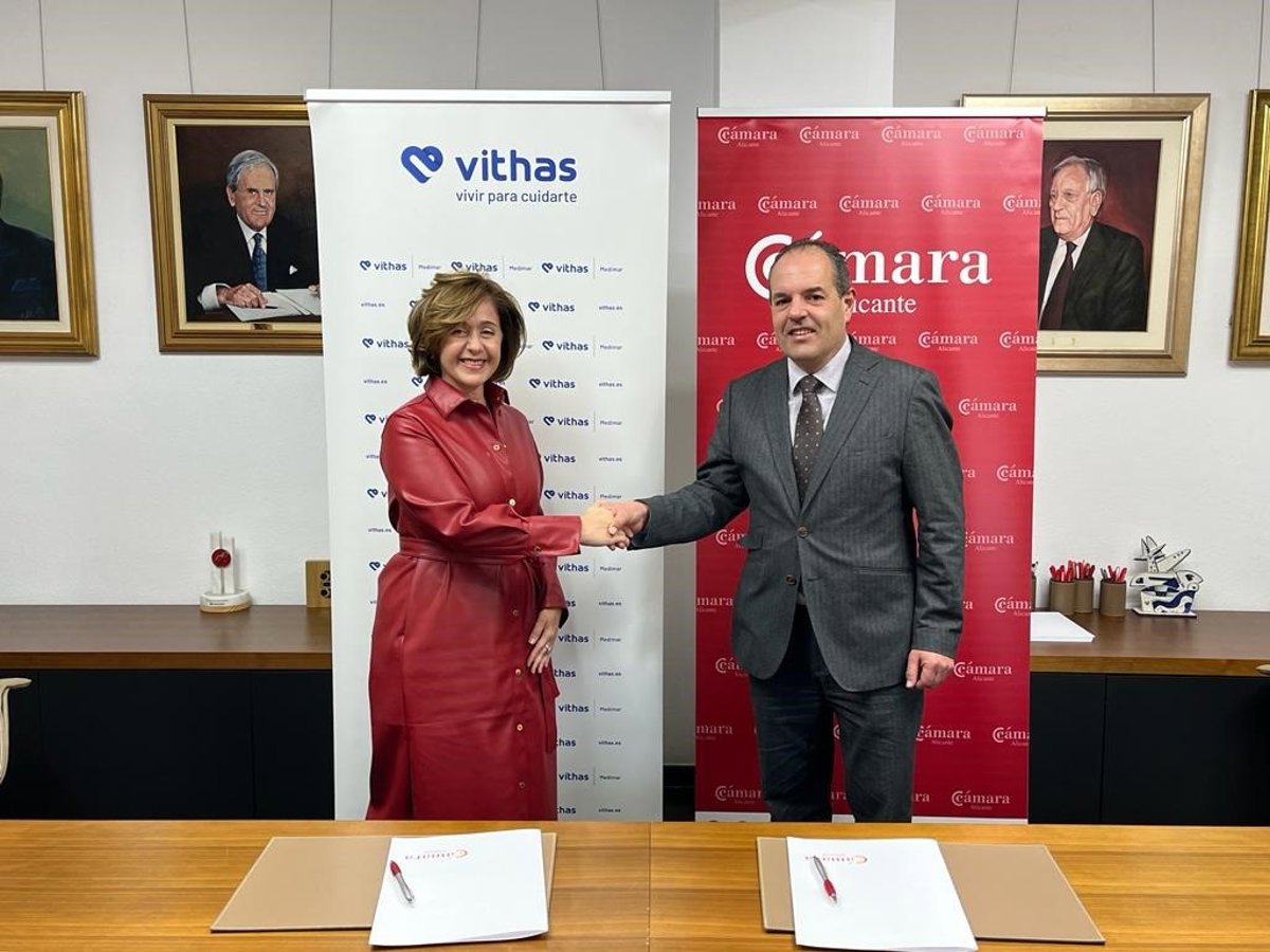 Según han informado en un comunicado, la firma de este acuerdo, que ha contado con la presencia de la vicepresidenta de la Cámara de Comercio de Alicante, Eva Miñano, y el gerente de los hospitales Vithas en Alicante, Carlos Yago, se enmarca dentro de la colaboración que ambas partes han acordado mantener durante este ejercicio en materia de promoción de la salud, participación en comisiones de sanidad, así como otras acciones relacionadas con la prevención de enfermedades o fomento de la dieta mediterránea, entre otras.