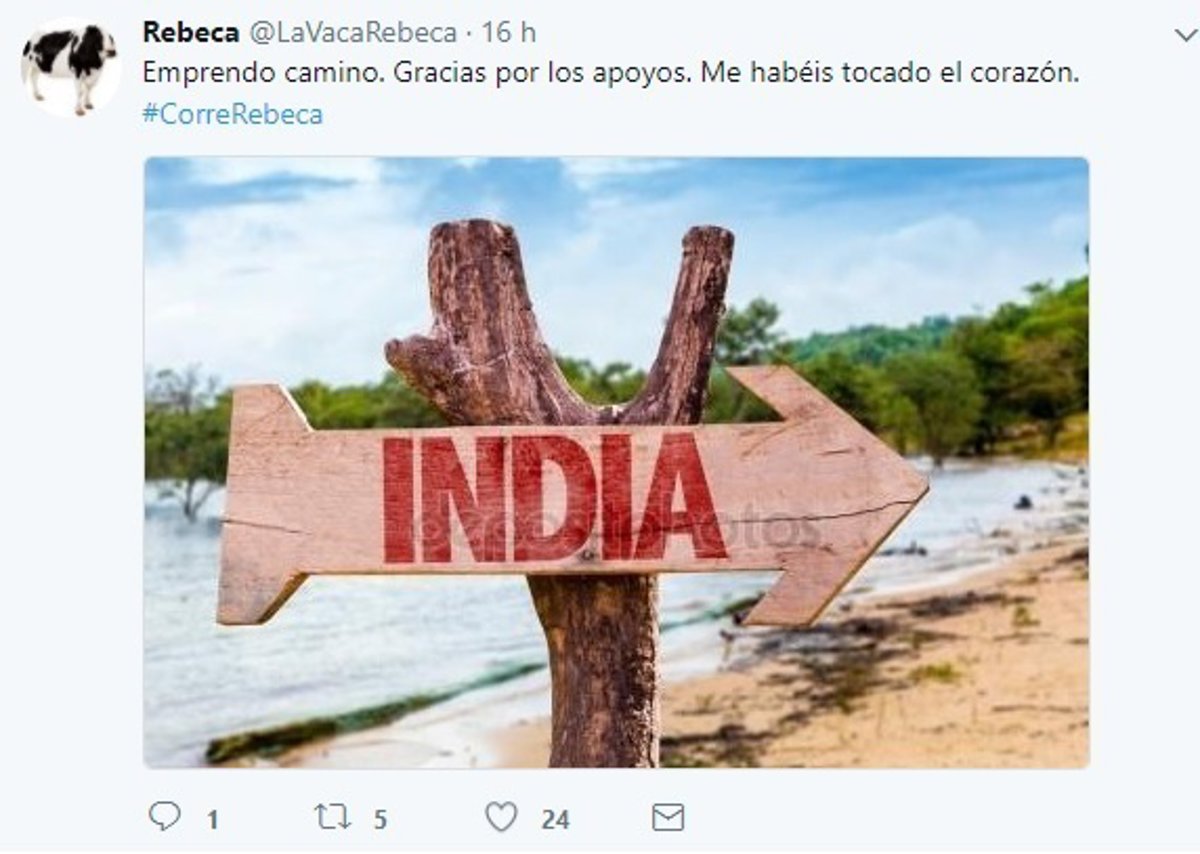 Esta huida de la vaca, 'Rebeca', tiene ya su relato, al minuto y con humor, en Twitter con el perfil La Vaca Rebeca, que narra desde la primera persona las supuestas peripecias de la vaca en su viaje a la libertad.