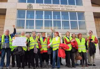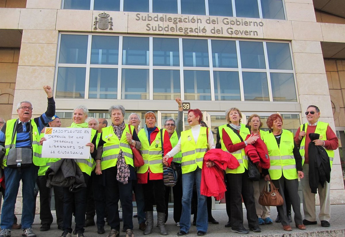 Así, jubilados miemebros de este colectivo han presentado esta petición de reunión por registro de entrada de la Subdelegación de Gobierno de Valencia donde sehan concentrado, ataviados con chalecos reflectantes con el lema 'Iaioflautas Valencia', al grito de 'A estos iaios no nos callan', 'Gobierno dimisión', y 'sí se pueden'. Algunos de los trabajadores aplaudieron la protesta.