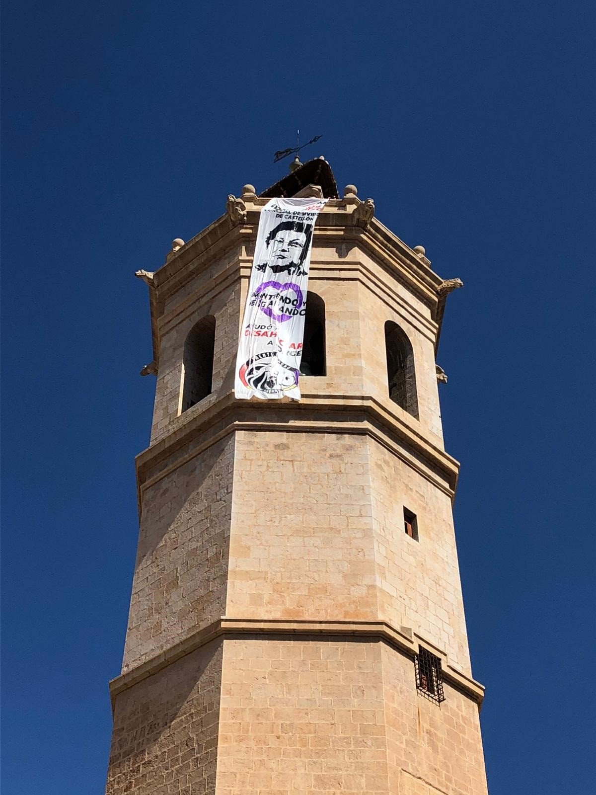 La Policía Local de Castelló ha identificado este jueves a cuatro personas tras desplegar una pancarta desde el Fadrí, en la que se critica a la concejala de Vivienda del Ayuntamiento, María Jesús Garrido.