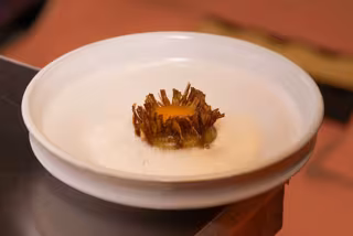 Ignacio Caro, del restaurante Cisoria de Villena (Alicante), se ha proclamado ganador del II Concurso Nacional al Mejor Plato con Alcachofa de la Vega Baja del Segura tras presentar una alcachofa frita rellena de anguila ahumada con yema de huevo y, en su base, una espuma de tubérculos y setas.