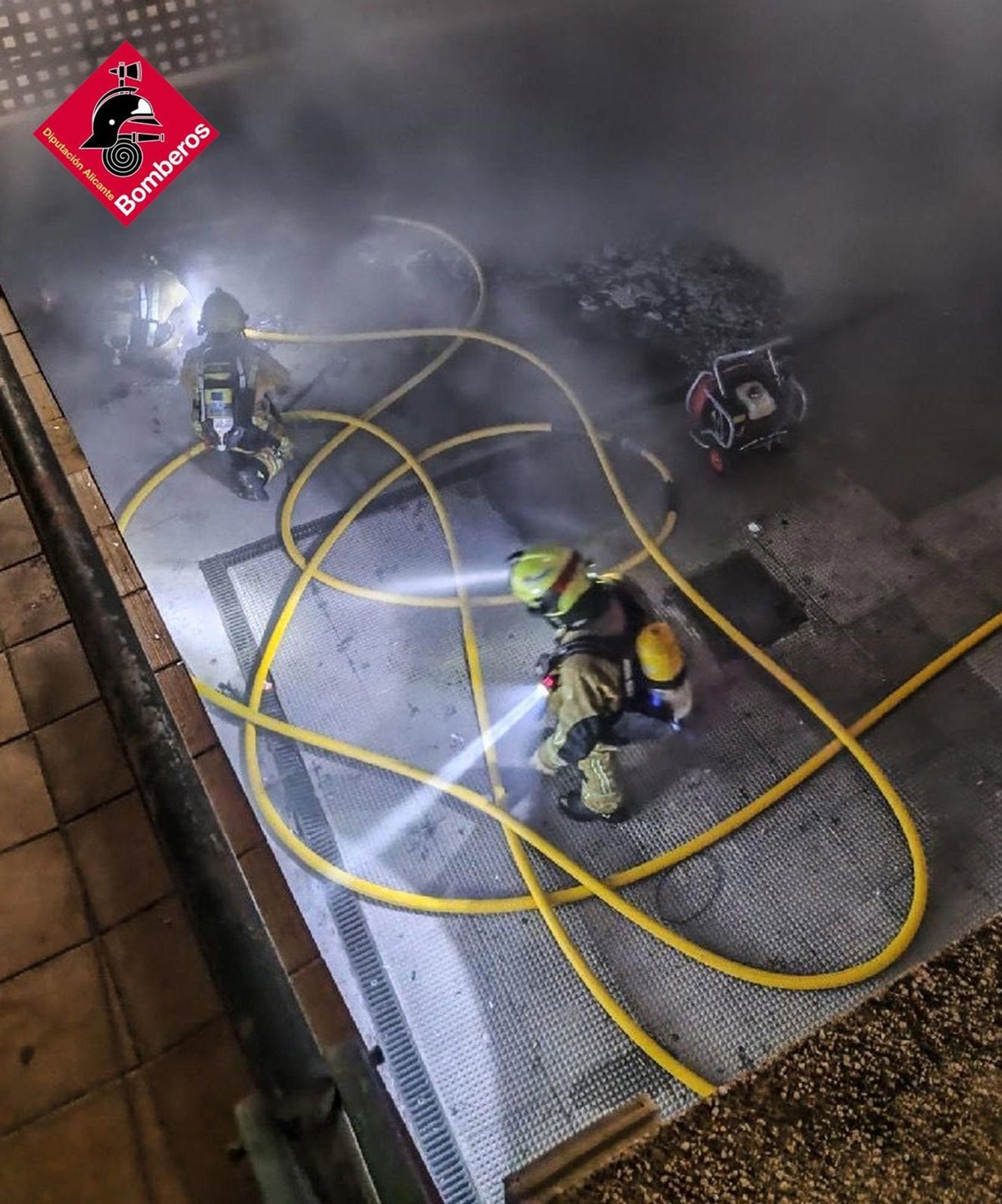 La cantidad de humo provocó el desalojo de un edificio de cinco plantas e hizo que saliera toda la dotación de bomberos disponible de Torrevieja con ayuda del parque de Almoradí para extinguir el fuego.