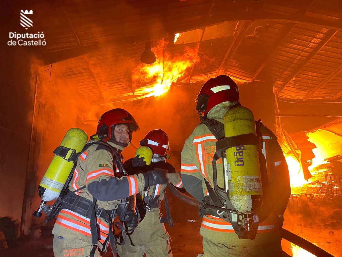 Desde las 01.40 horas de la madrugada, dotaciones de bomberos del Consorcio y del área de Seguridad del Ayuntamiento de Castelló de la Plana trabajan en la extinción de las llamas.