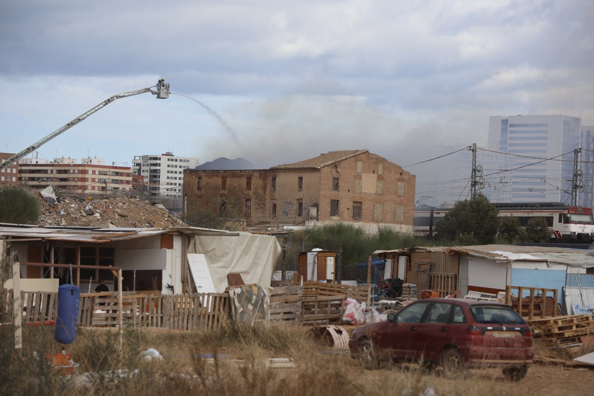 El incendio se ha declarado poco antes de las 12 horas de este jueves en un asentamiento chabolista de València. La zona en la que se ha declarado el fuego, por la calle San Vicente Mártir, se encontraba en las inmediaciones de las vías, por lo que se ha interrumpido la circulación como medida de precaucion.