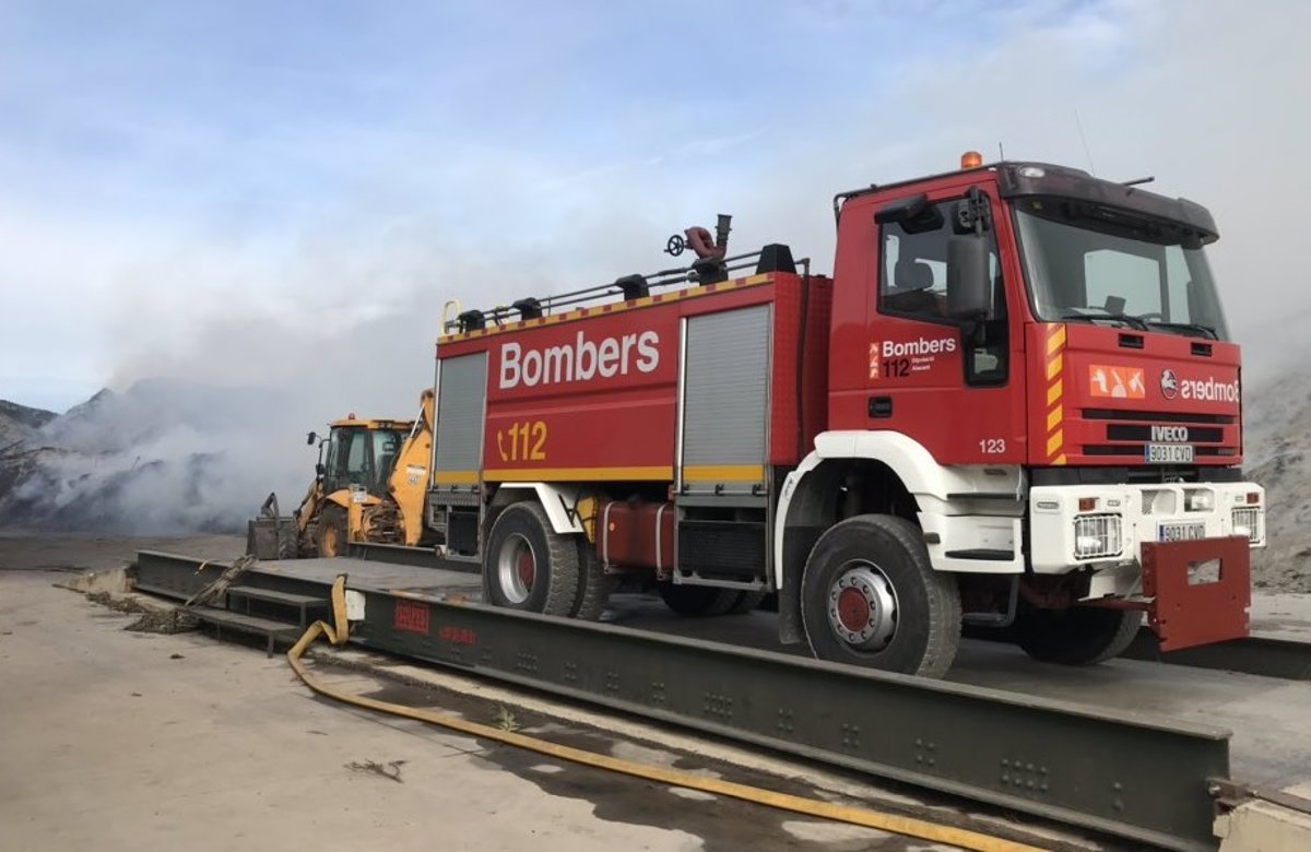 Un incendio quema desde esta medianoche, en Dénia (Alicante), material orgánico de un vertedero donde se acumulan algas retiradas de las playas. El vertedero está en el kilómetro 2 de la N-332 entre Dénia y Ondara y cerca de un hospital privado.