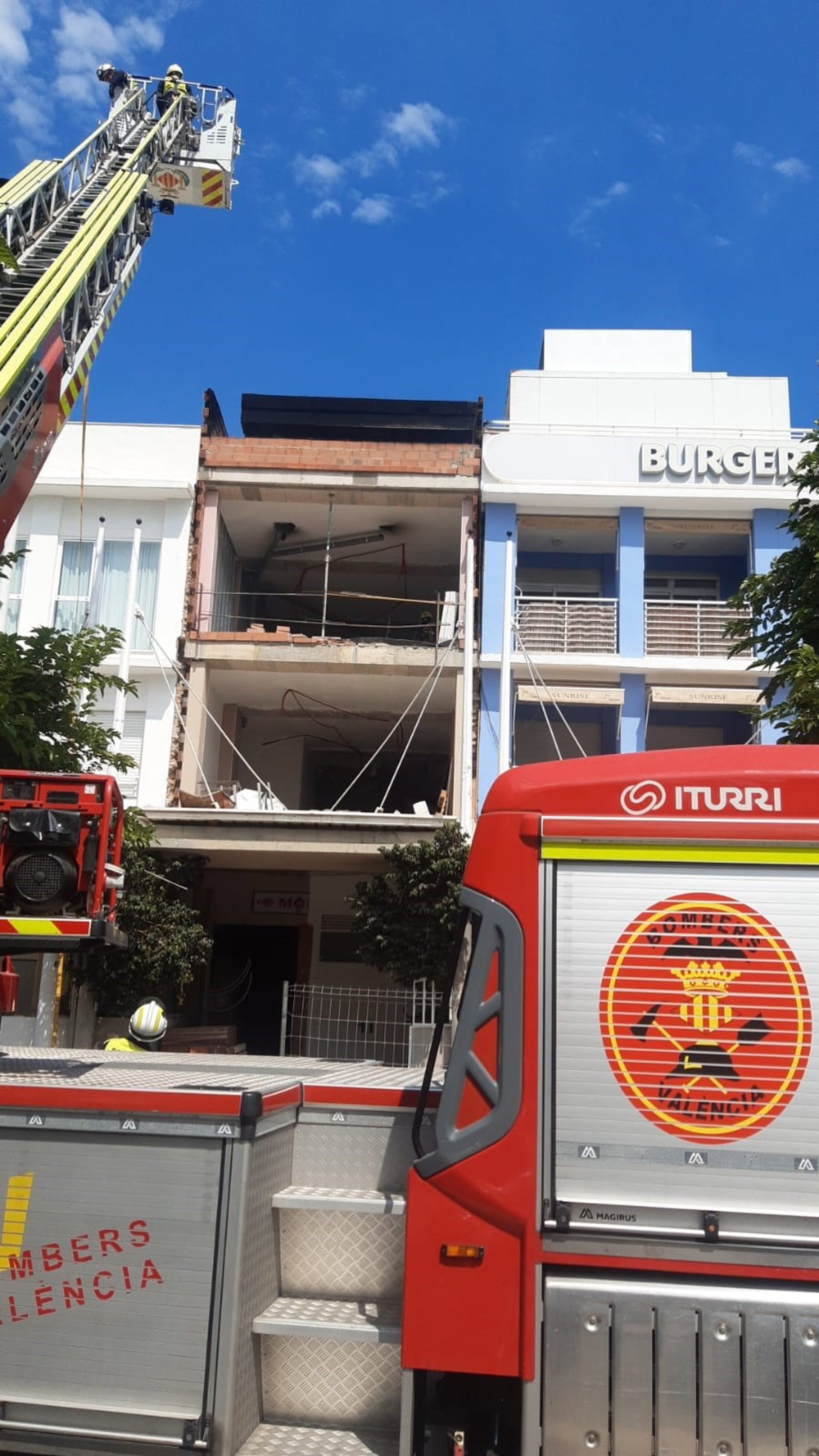 Al parecer, el fuego se ha iniciado en una tela asfáltica que se encontraba entre los materiales de la obra del edificio, antiguo restaurante Monkili.