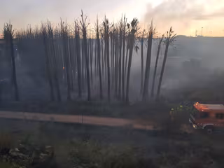 Efectivos de bomberos trabajan este miércoles por la noche en la extinción de un incendio en un palmeral de Silla (Valencia) que ha provocado retenciones puntuales en la A-7, según ha informado el Consorcio Provincial.