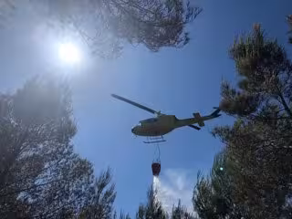 Un helicóptero descarga sobre el incendio del Camí de Cabanes de Xbia. - CONSORCIO PROVINCIAL DE BOMBEROS