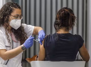 Una joven recibe la vacuna contra el Covid-19 en el dispositivo puesto en marcha en la Ciutat de les Arts i les Cincies de Valencia, a 28 de julio de 2021, en Valencia, Comunidad Valenciana, (España). - Rober Solsona - Europa Press