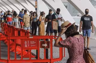 Archivo - Una fila de personas espera para recibir la vacuna contra el Covid-19 en el dispositivo puesto en marcha en la Ciutat de les Arts i les Cincies de Valencia, a 28 de julio de 2021, en Valencia, Comunidad Valenciana, (España). - Rober Solsona - Europa Press - Archivo