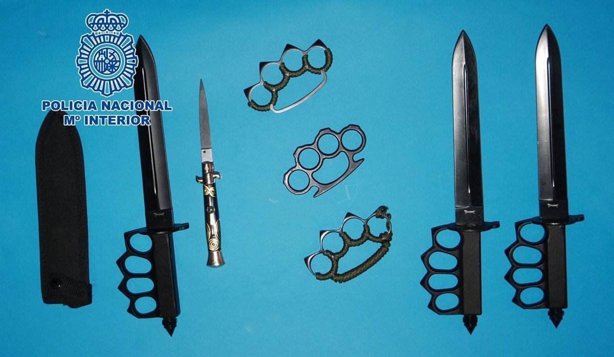Con los registros domiciliarios practicados, los agentes entre otras pruebas, localizaron tres cuchillos de gran tamaño, dos de ellos en la lavadora de uno de los domicilios, concretamente de 35 y 20 centímetros de hoja, en cuyo mango llevan incorporado un puño americano. De igual modo se incautaron de una navaja automática tipo puñal, que supuestamente fue utilizada en la reyerta. Tras este hallazgo, a los detenidos mayores de edad se les responsabiliza además del delito de tenencia ilícita de armas.