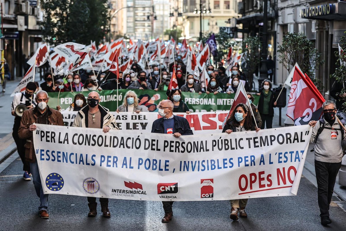 Trabajadores interinos se han manifestado este martes en Valncia, Alicante y Castelló de la Plana en una jornada de huelga contra el decreto del Gobierno conocido como 'Icetazo' que pretende acabar con la temporalidad en la administración, ya que realmente temen que les deje "abocados al paro".