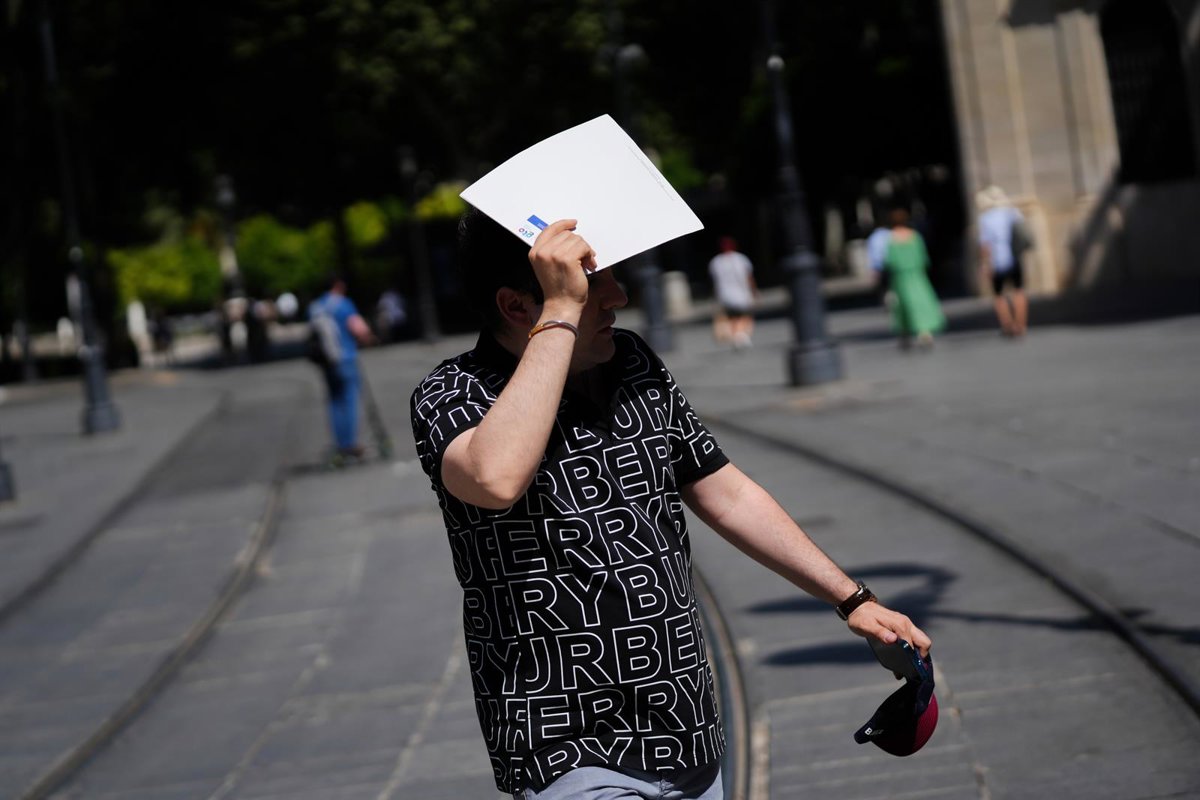 Un hombre se protege del sol con una carpeta. Imagen de archivo. - María José López - Europa Press