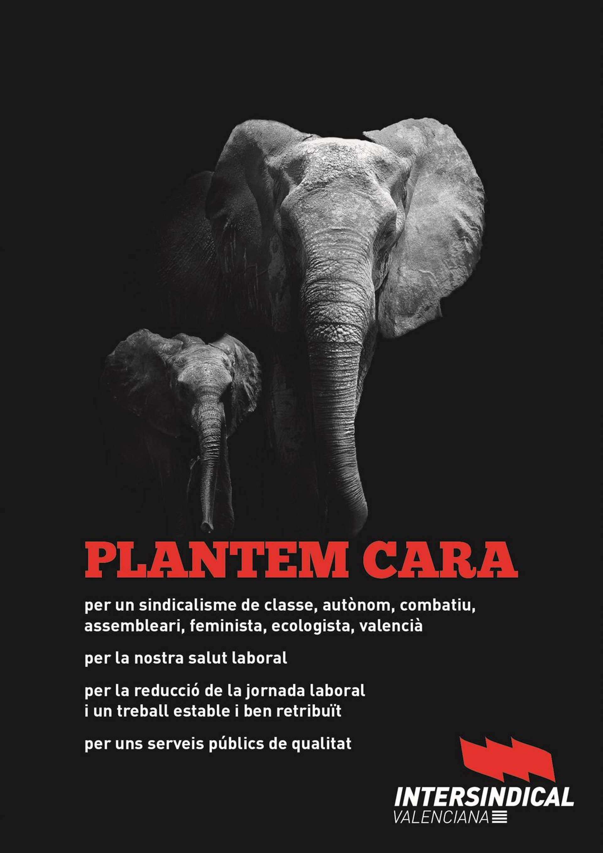 Intersindical Valenciana ha presentado la campaña "Plantem Cara" que se concreta en cuatro grandes líneas de trabajo para el año 2020. Con ella el sindicato aboga "por un sindicalismo de clase, autónomo, combativo, asambleario, feminista, ecologista y valenciano, por la salud laboral, por la reducción de la jornada laboral y un trabajo estable y bien retribuido y por unos servicios públicos de calidad".