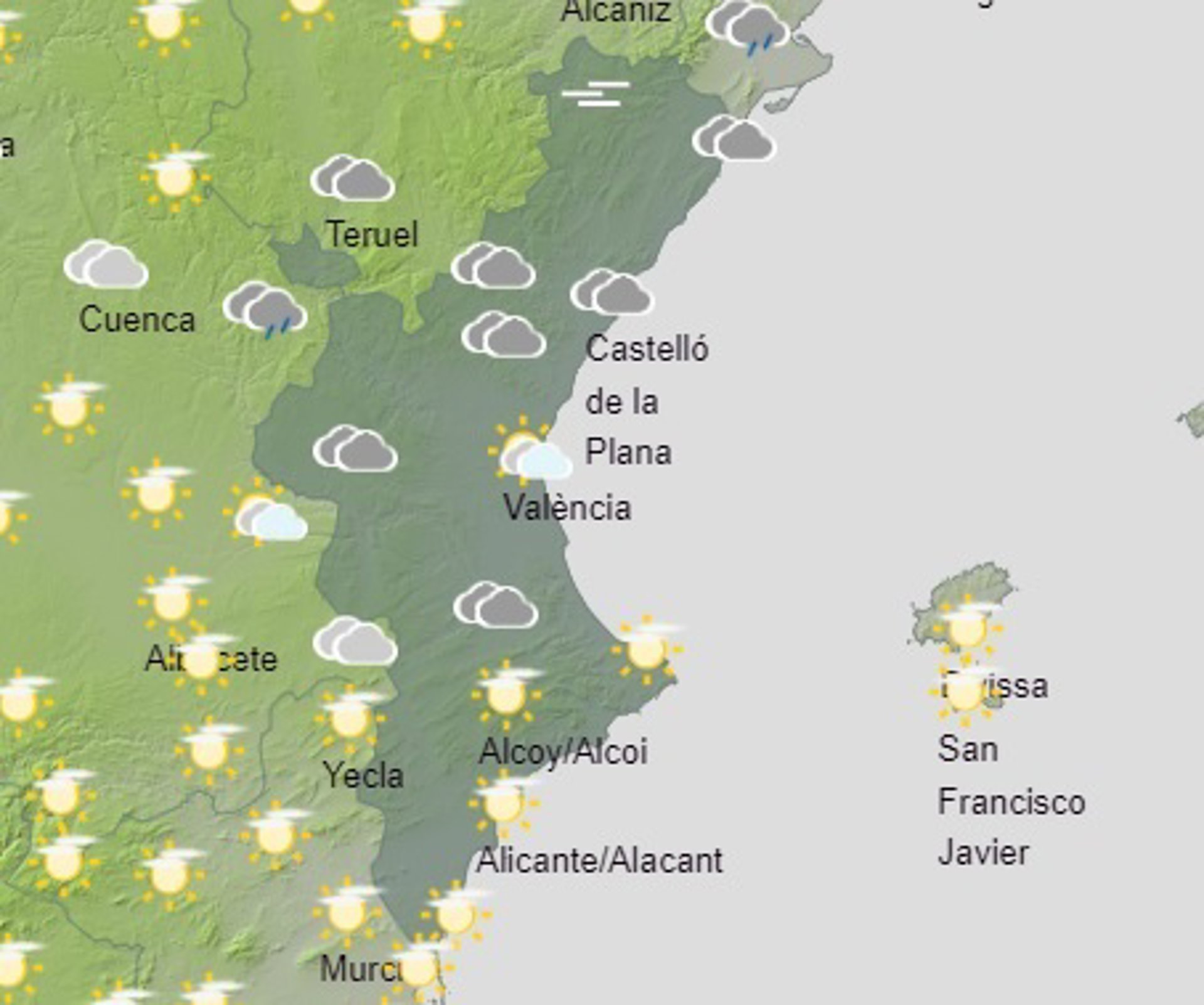 Predicción del tiempo para este domingo en la Comunitat Valenciana - AEMET
