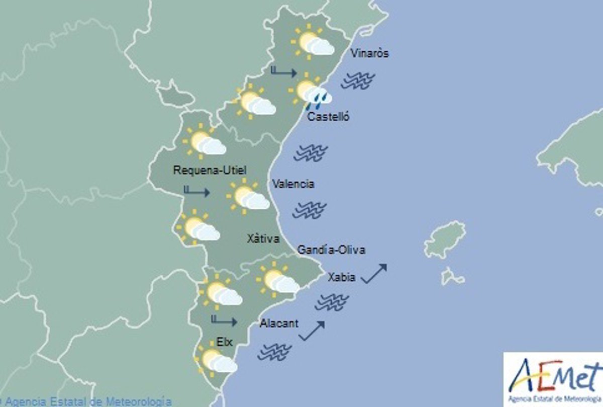 Las mínimas más elevadas, con 11 grados, las registrarán las tres capitales de provincia y Gandia, mientras que en Dénia, Elche, la Vall d'Uixò y Vinaròs (Castellón) se quedarán en 10 grados.
