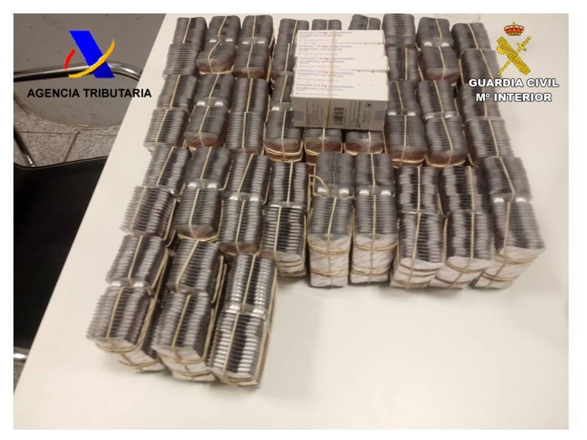 Según ha informado el instituto armado en un comunicado, los agentes detectaron el pasado mes de enero un envío, por vía aérea, de 5.640 pastillas de zoplicona, desde Torrevieja con destino a irlanda. El paquete fue interceptado en el control fiscal, en los almacenes del aeropuerto antes del embarque.