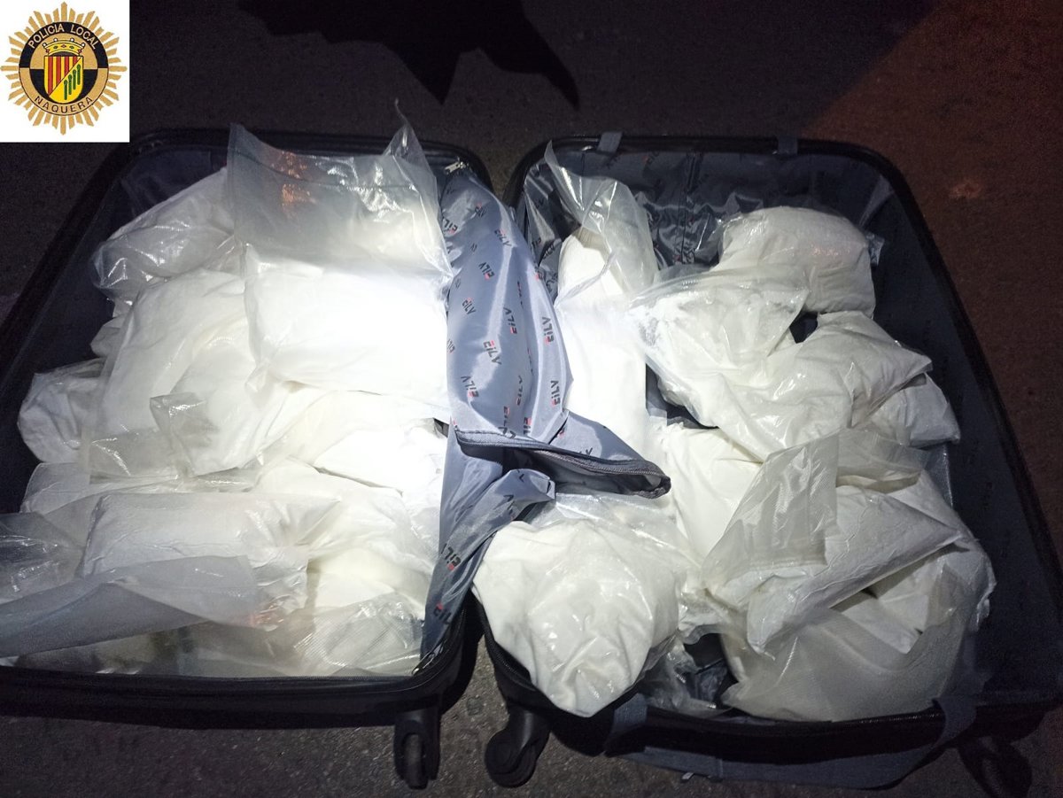 Agentes de la Policía Local de Nquera, con el apoyo de la Unidad Canina del cuerpo policial, han detenido a tres personas tras intervenir 27,5 kilogramos de metanfetamina de cristal que se encontraban en el interior de una maleta dentro de un vehículo que circulaba por el municipio.
