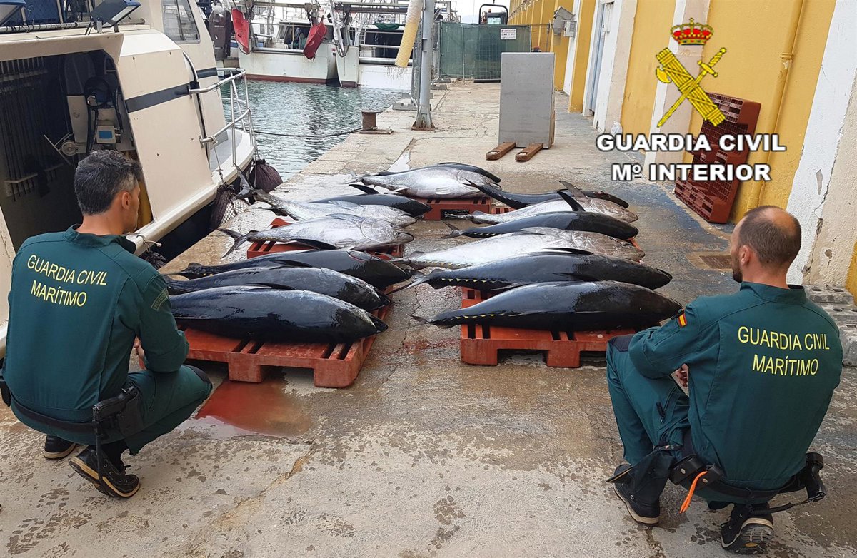 La actuación arranco cuando los guardias civiles, tras realizar una inspección en un pesquero de palangre de superficie, encontraron 14 ejemplares de atún rojo sin declarar en una bodega oculta.
