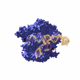 En la imagen, Cas9, una enzima endonucleasa asociada con el sistema CRISPR, actuando sobre el ADN objetivo. / Antonio Reifs (CIC nanoGUNE) - UNIVERSITAT D'ALACANT (UA)
