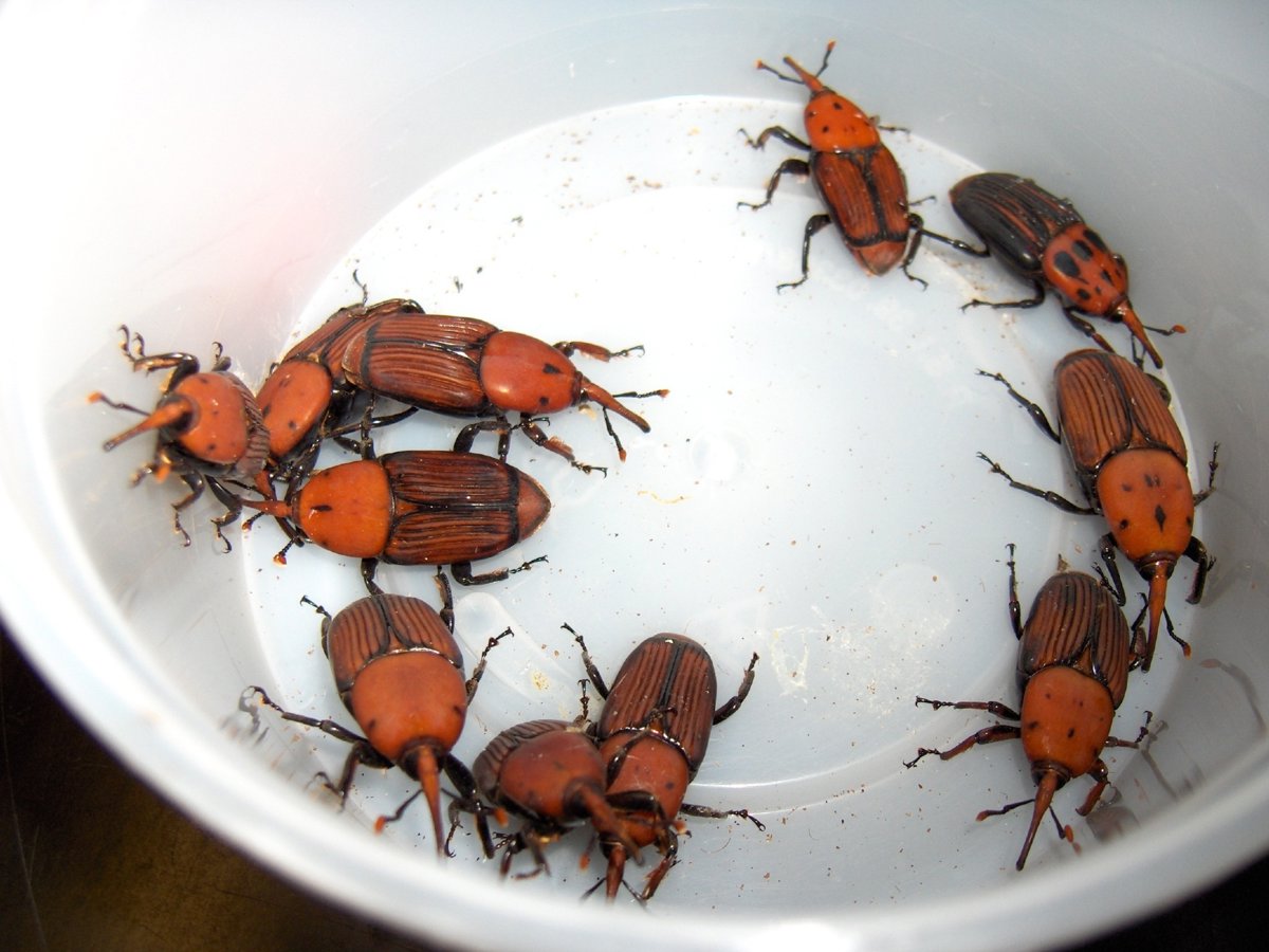 En los ensayos de campo, los investigadores de la UPV han comprobado que la mayoría de los adultos de Rhynchophorus ferrugineus se dispersan volando distancias cortas, menos de 500 metros, en línea con los resultados obtenidos en laboratorio.