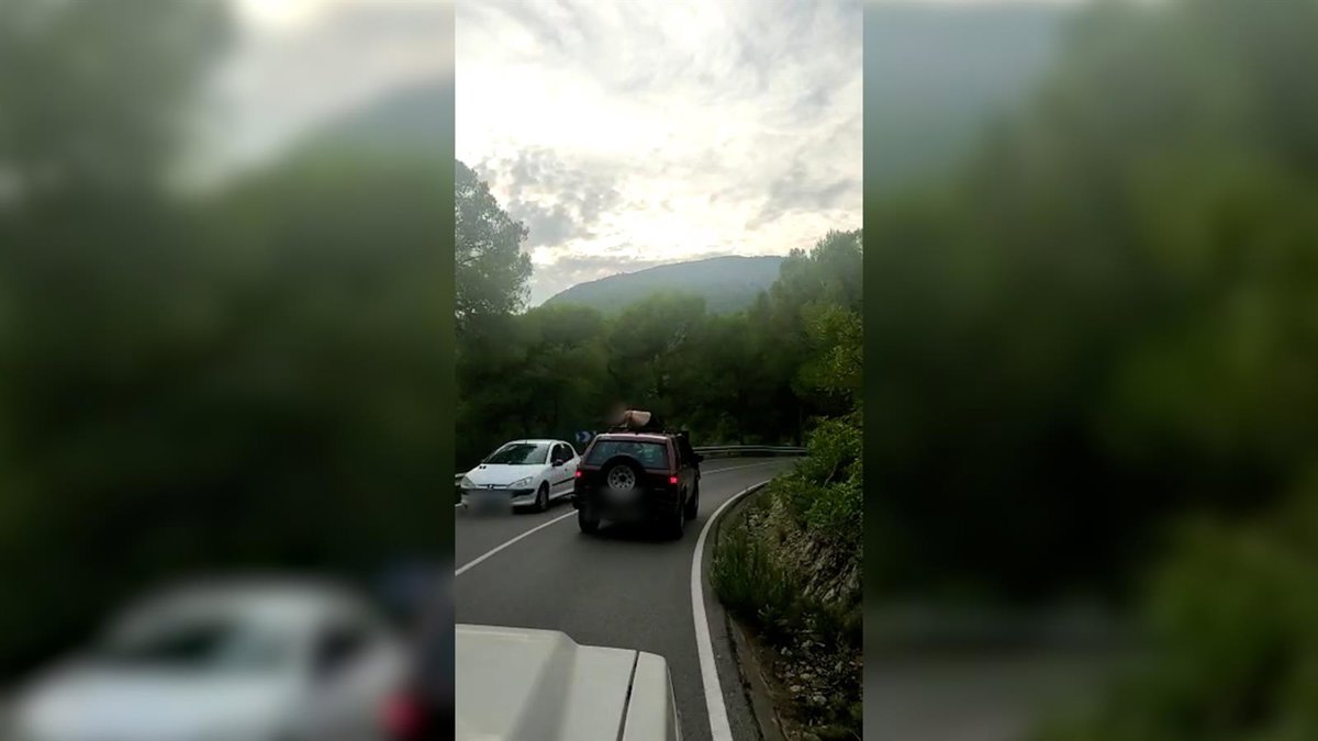 La Guardia Civil ha investigado a dos hombres por conducir de forma temeraria, ya que, mientras uno conducía, el otro iba sentado sobre el techo del vehículo en una carretera de montaña, abierta al tráfico, con numerosas curvas y de reducida visibilidad. - GUARDIA CIVIL