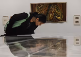 Una mujer contempla las obras de la exposición 'La creación abierta y sus enemigos: Asger Jorn en situación', durante la presentación de la muestra, en el Institut Valenci dArt Modern (IVAM). - Rober Solsona - Europa Press