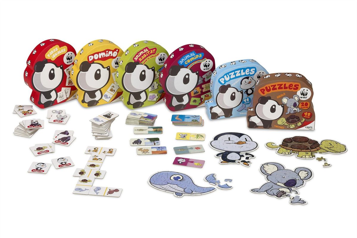 Bajo el sello de la organización naturalista, que opera en más de 100 países y cuenta con el apoyo de 5 millones de personas en todo el mundo, el Oso Panda, WWF y Cayro han desarrollado varios juegos tradicionales dentro de esta campaña de concienciación, entre los que se encuentran puzzles con formas, el juego del panda --similar al juego de la oca--, el juego de pares iguales, un dominó, el 'animal hábitat' o 'animal comida'.