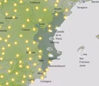 Durante la jornada, se esperan intervalos nubosos. En el litoral del sur de Valencia y norte de Alicante, se registrarán probables chubascos por la mañana; mientras que en el interior de Castellón, se observarán intervalos nubosos de evolución diurna por la tarde y baja probabilidad de chubascos o tormentas aisladas.