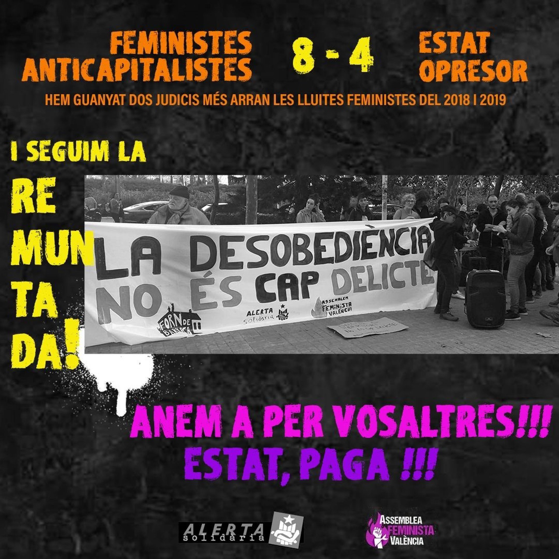 Desde Alerta Solidria y Assemblea Feminista de Valncia celebran esta resolución: "Una vez más, los juzgados han anulado otra de las multas impuestas a las feministas por las movilizaciones de las huelgas de 2018 y 2019".