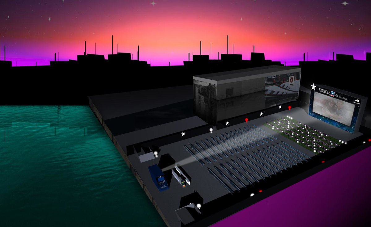 Disfrutar de una buena película a la orilla del mar es la propuesta que lanzan para este verano la cadena de salas de cine Kinépolis y la promotora Mundosenti2, que del 1 de julio al 31 de agosto abrirán la primera terraza al aire libre con tecnología en alta definición (HD) junto al edificio Alinghi del Puerto de Valencia. Con aforo para 1.000 personas, el proyecto bautizado como 'Kinépolis Marina Real' dispondrá de hamacas para todos los espectadores, además de una zona vip con mesas para tomar algo.