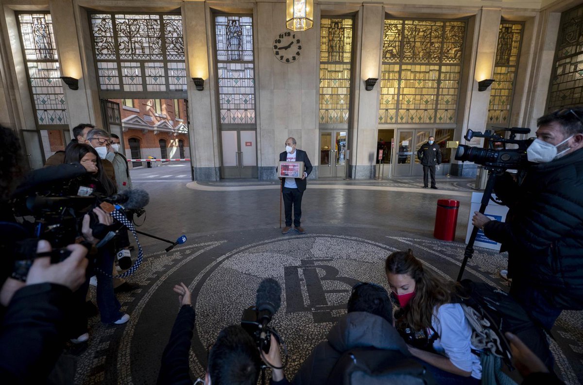 Carlos San Juan, el hombre de 78 años que ha recogido más de 600.000 apoyos con su campaña 'Soy Mayor, No Idiota', a su llegada al Banco de España para registrar sus firmas (archivo) - Alberto Ortega - Europa Press
