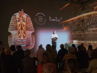 Con el aforo completo y en la sala inmersiva del centro cultural, los asistentes pudieron vivir el antiguo Egipto con los cinco sentidos.