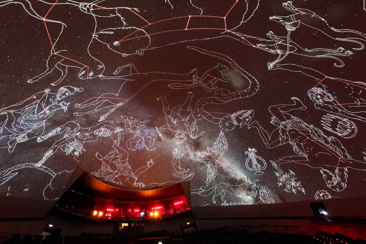 Guiados por un planetarista, el público contempla la cúpula de la sala de proyecciones cubierta por miles de estrellas e identifica a las principales constelaciones, explora planetas como Júpiter o algunas lunas como Ío o Titán.