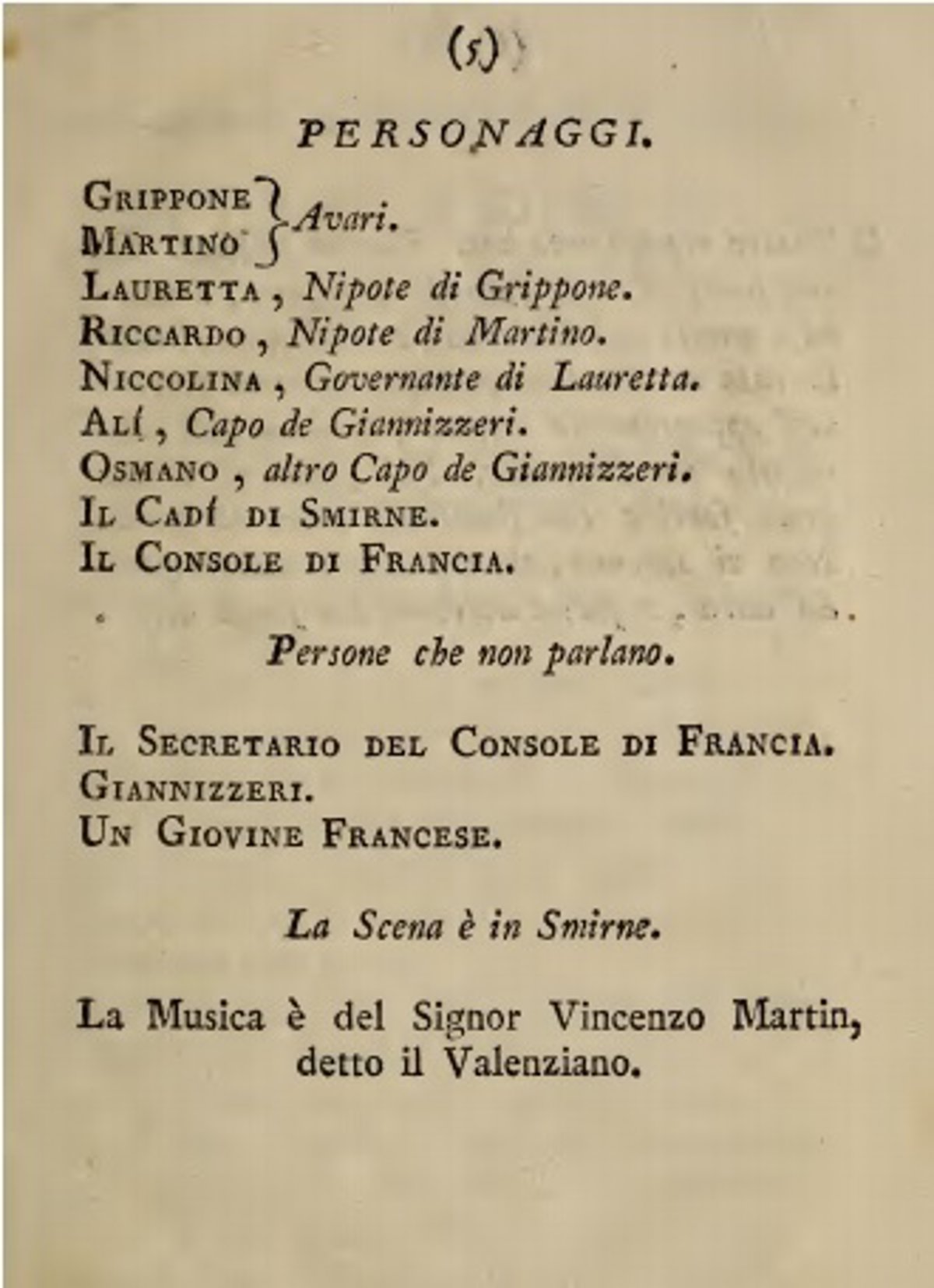 Hasta la fecha, prosigue la catedrática, había una referencia en una fuente secundaria sobre esta ópera. Aparece citada en un Índice de espectáculos teatrales que se publicó en Italia en el momento (a modo de "cartelera" de lo que ocurría en otros lugares de Europa) pero con el único dato de título, autor de música (Martín y Soler) y autor de libreto (Gerolamo Bosello).