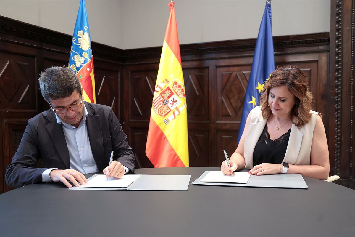 El acto de firma del acuerdo ha contado con la alcaldesa de València, Mª José Catalá; el 'president' de la Generalitat, Carlos Mazón; el conseller de Medio Ambiente, Infraestructuras y Territorio, Vicente Martínez Mus, y el gerente de la Epsar, José Aparicio.