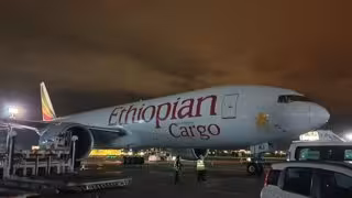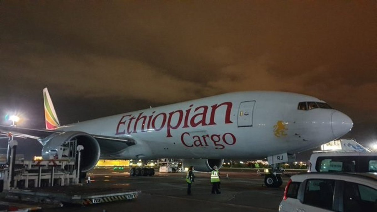 El avión es un Boeing 777 de la compañía Ethiopian Cargo que despegó de Guangzhou y llegó a Madrid tras hacer escala en Addis Abeba dentro de la Operación Ruta de la Seda para abastecer a la Comunitat Valenciana de material sanitario desde China ha llegado esta pasada madrugada.