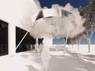 Una asamblea podrá decidir cuándo llueve sobre la explanada del Institut Valenci d'Art Modern (IVAM). Esta es una de las ideas que trae la instalación que presidirá el espacio abierto a la entrada del museo, 'Sota el núvol d'estiu', una nube artificial ideada por el colectivo de arquitectos Aranea que, a base de vapor de agua generará frescor e incluso lluvia para combatir el caluroso verano de Valncia.
