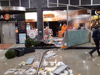 cristalera de una gasolinera de El Altet, y se llevó también parte de sus expositores. El fuerte viento y la lluvia provocaron también la caída de tejas y persianas, el corte al tráfico de la N-340 a la altura del Polígono de Saladas y el cierre de otra calle en Torrellano por el granizo.