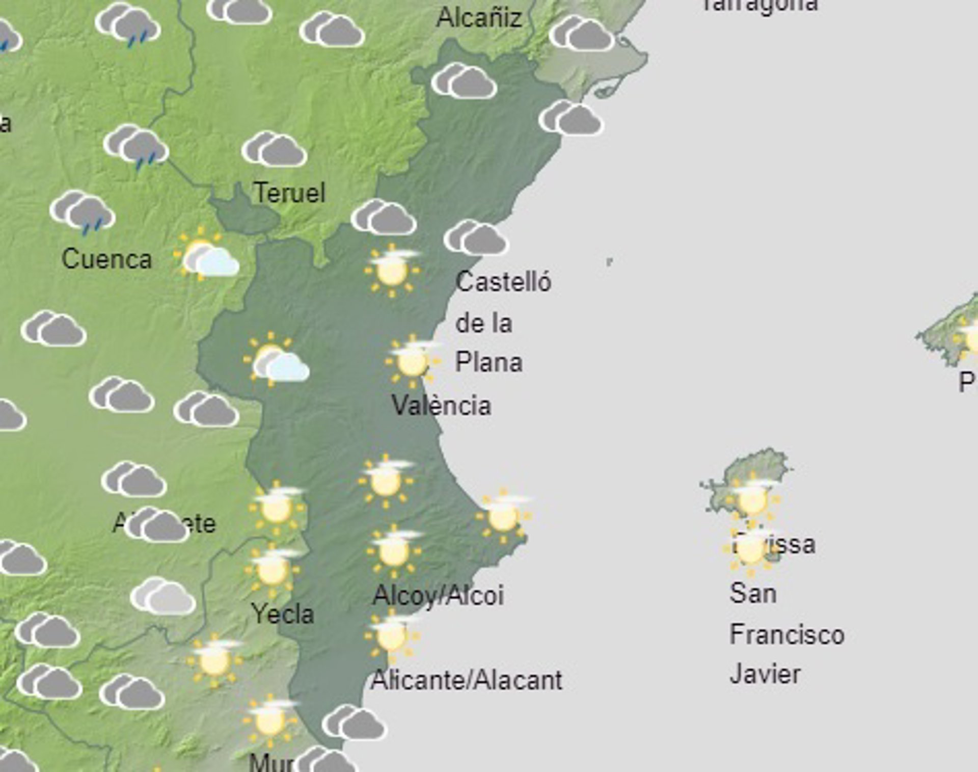En general, para este sábado se esperan intervalos nubosos que serán "más abundantes" en horas centrales, con chubascos dispersos ocasionalmente con tormenta en el interior, sin descartar que alcancen localmente el litoral de manera "menos intensa", apunta Aemet.