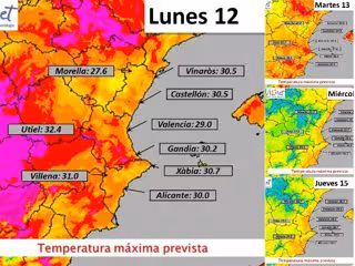 Las temperaturas máximas comenzarán a descender a partir de este martes en el interior de la Comunitat Valencianam donde en algunos puntos bajarán hasta 10ºC. Sin embargo, en el litoral habrá que esperar hasta el miércoles para que se note un ámbiente más fresco.